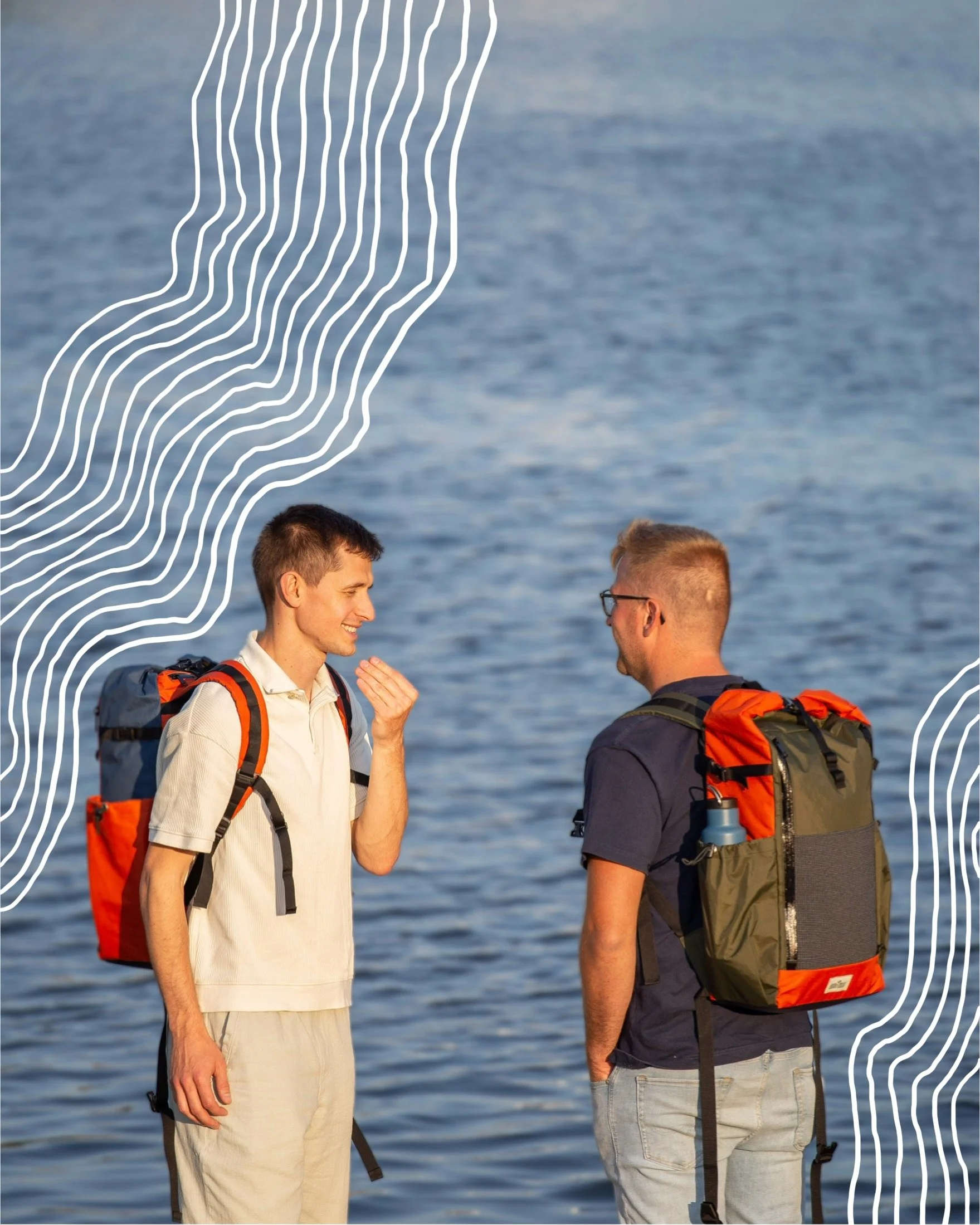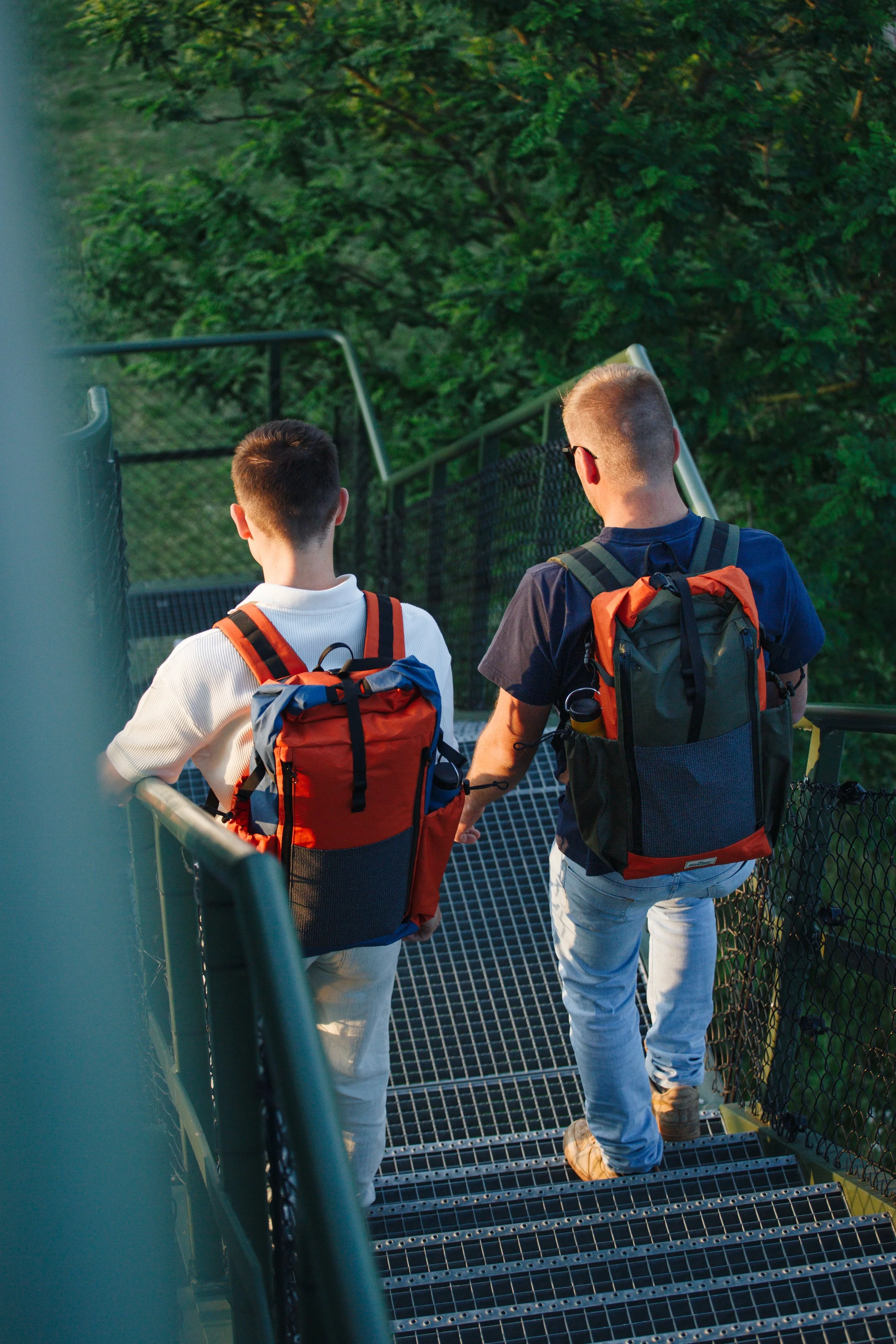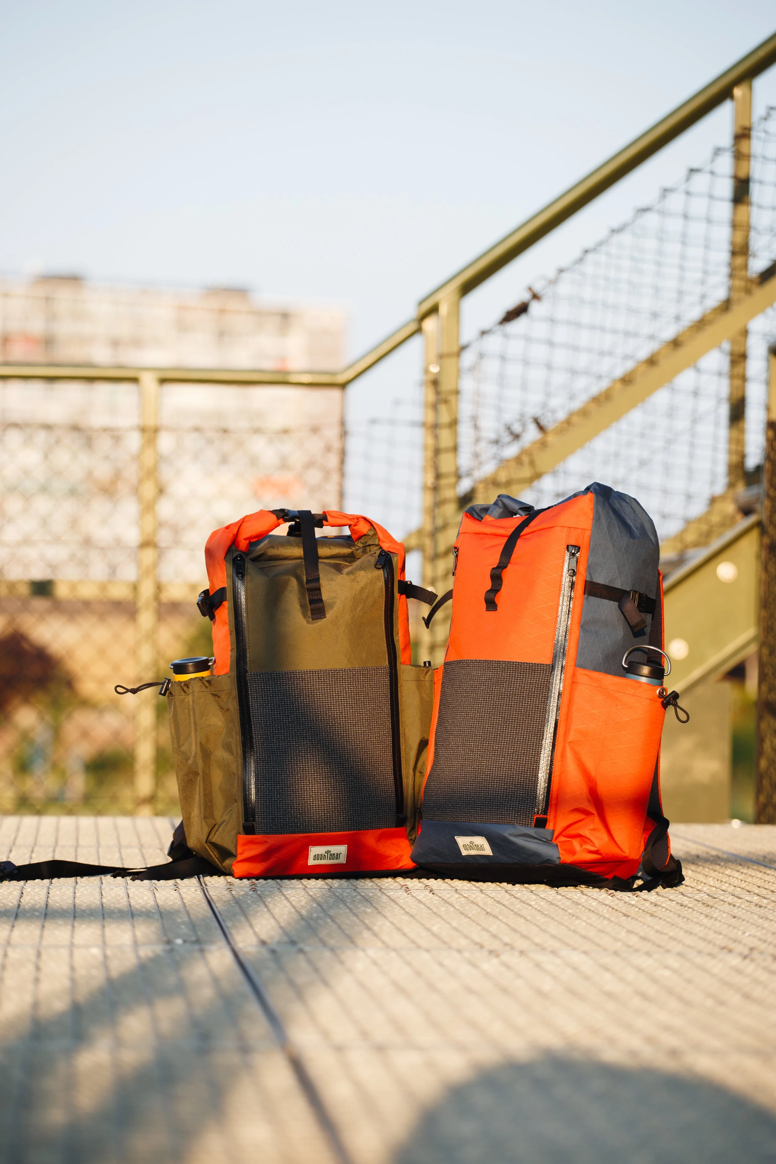 Based on the ski-touring pack, I made some improvements to the design like the addition of big side pockets to carry 1-2l bottles to make it more suitable for everyday life. The main compartment is accessed by the roll-top, or with the vertical zipper on the front of the pack. There is also another vertical zipper to access a big flat pocket. A smaller pocket on top holds stuff like sunglasses, a wallet or a pen. The chest strap and a minimal hip-belt keep this pack comfortable when you are carrying a bit more weight.