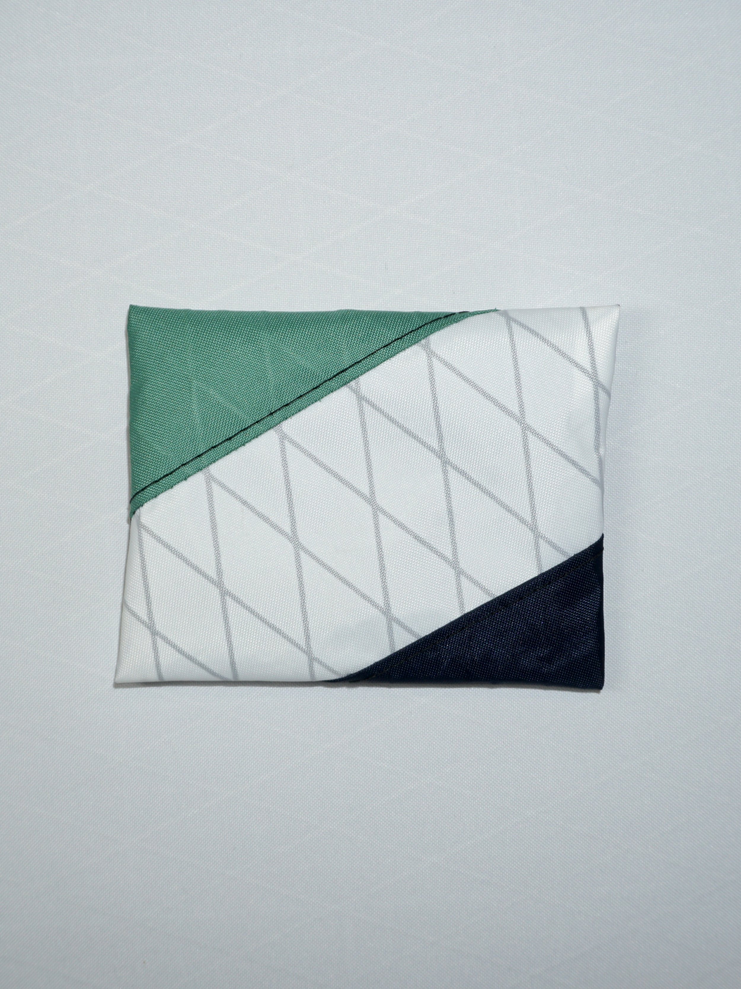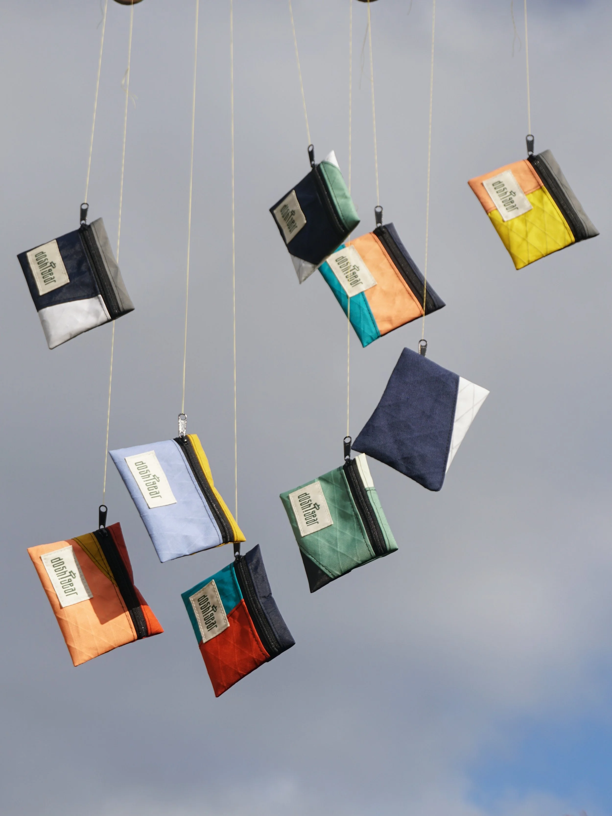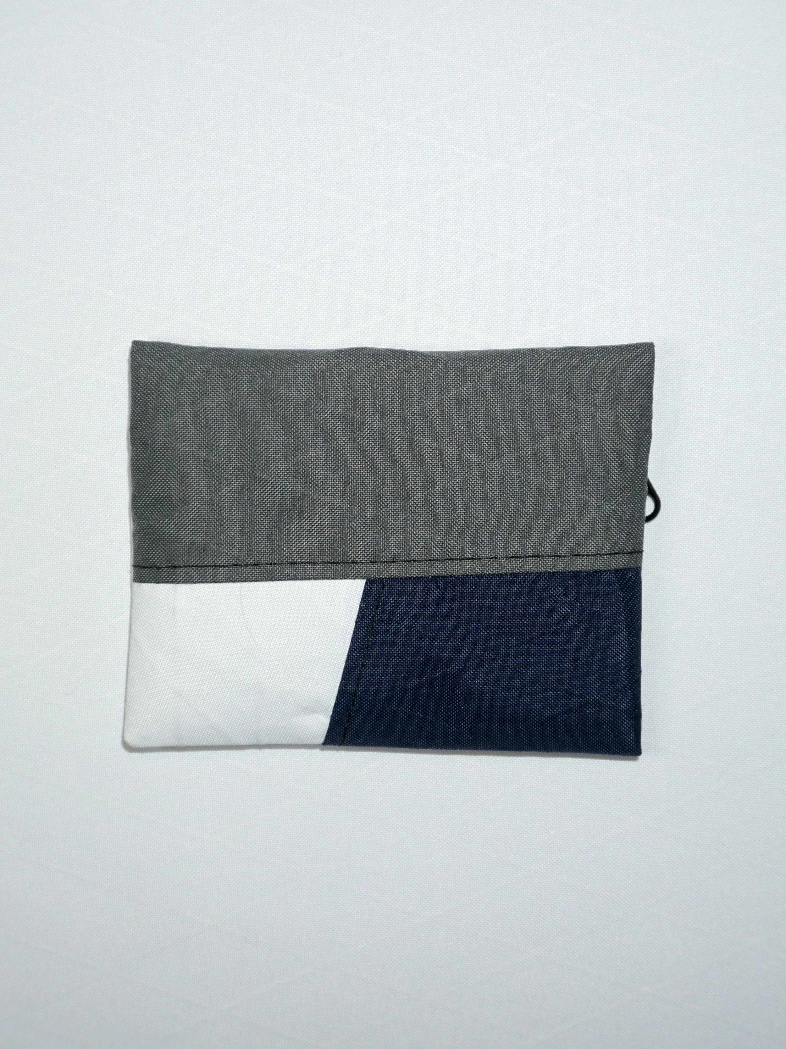 A small wallet made of scrap fabrics that would otherwise be thrown away. Big enough to fit a couple of credit cards and some cash. Follow my Instagram page to be notified when the next batch drops.