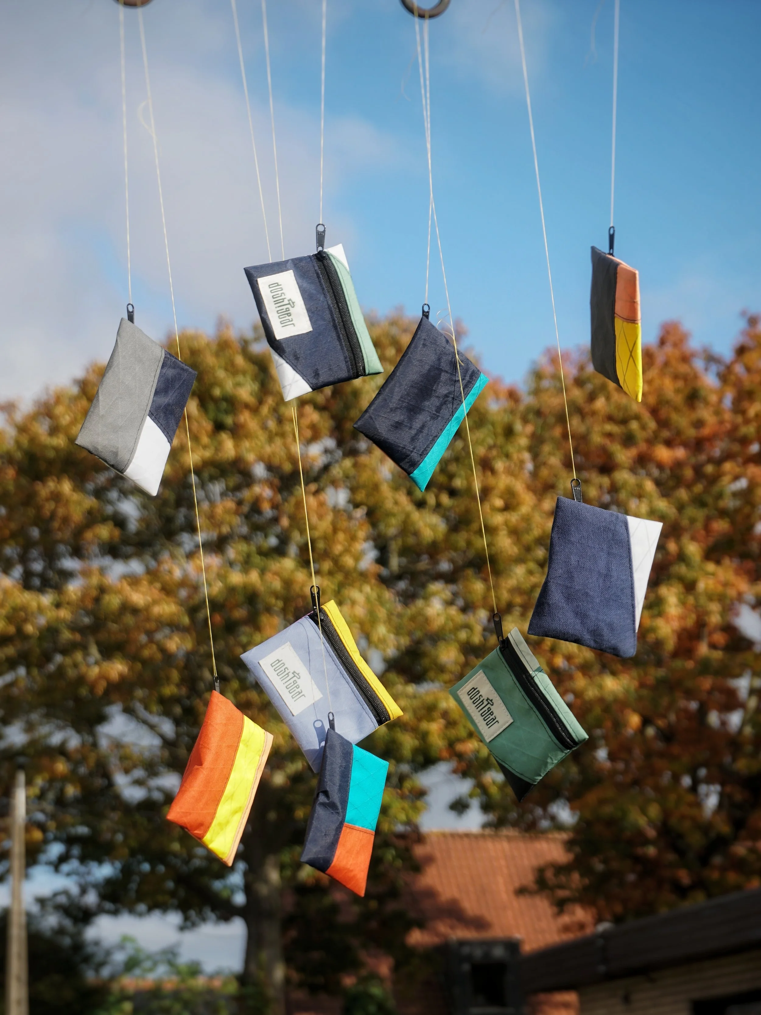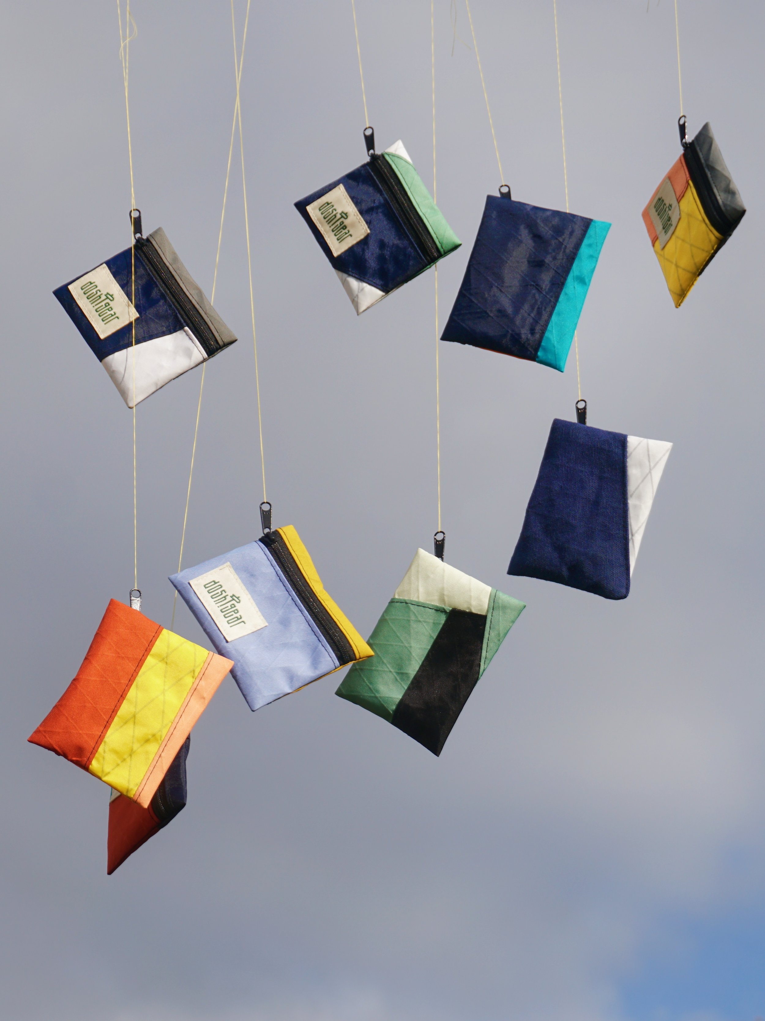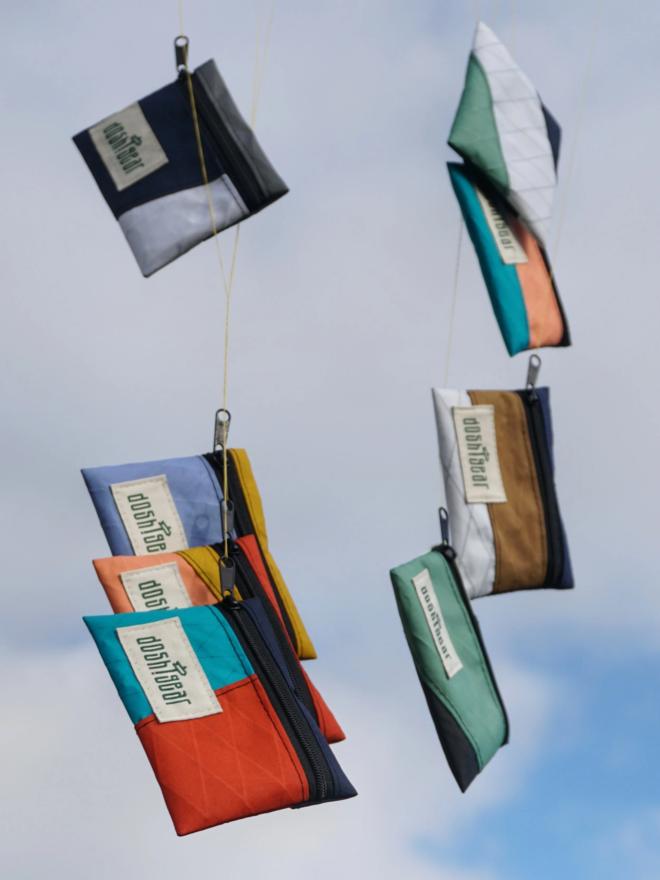 A small wallet made of scrap fabrics that would otherwise be thrown away. Big enough to fit a couple of credit cards and some cash. Follow my Instagram page to be notified when the next batch drops.